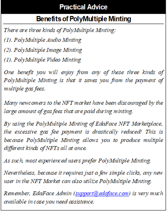 One unique feature of EdaFace NFT Marketplace is that it has seven minting varieties: