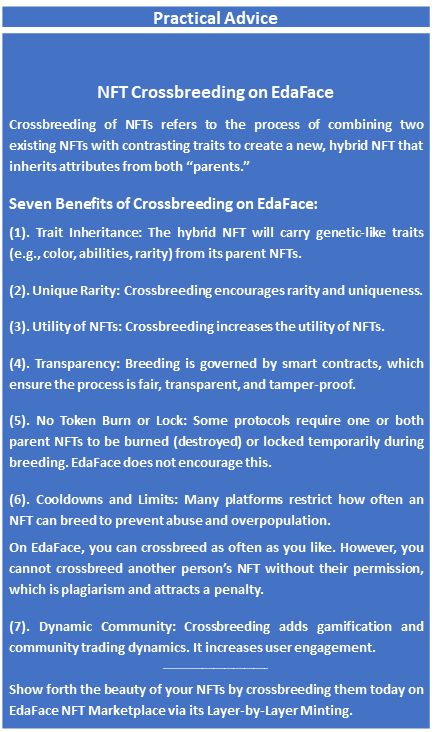 EdaFace NFT Market offers NFT Crossbreeding via its Layer-by-Layer Minting.